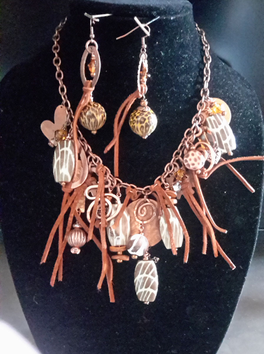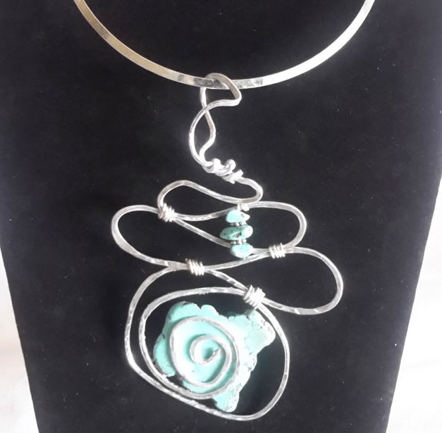 This MaDonna creation is awesome “in person”. She is made from clay, tree bark, branches, and other nature finds, which are all preserved with a clear resin. Then added a few chains, stones, and copper pieces & a “life is about creating yourself” sign. Enlarge the picture to see her face & catch a glimpse of her personality.